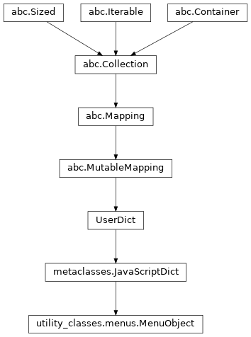 Special dict class used to construct a Highcharts menu configuration. Each key represents the identifier of a menu item, while the object is a configuration of that menu item’s settings.